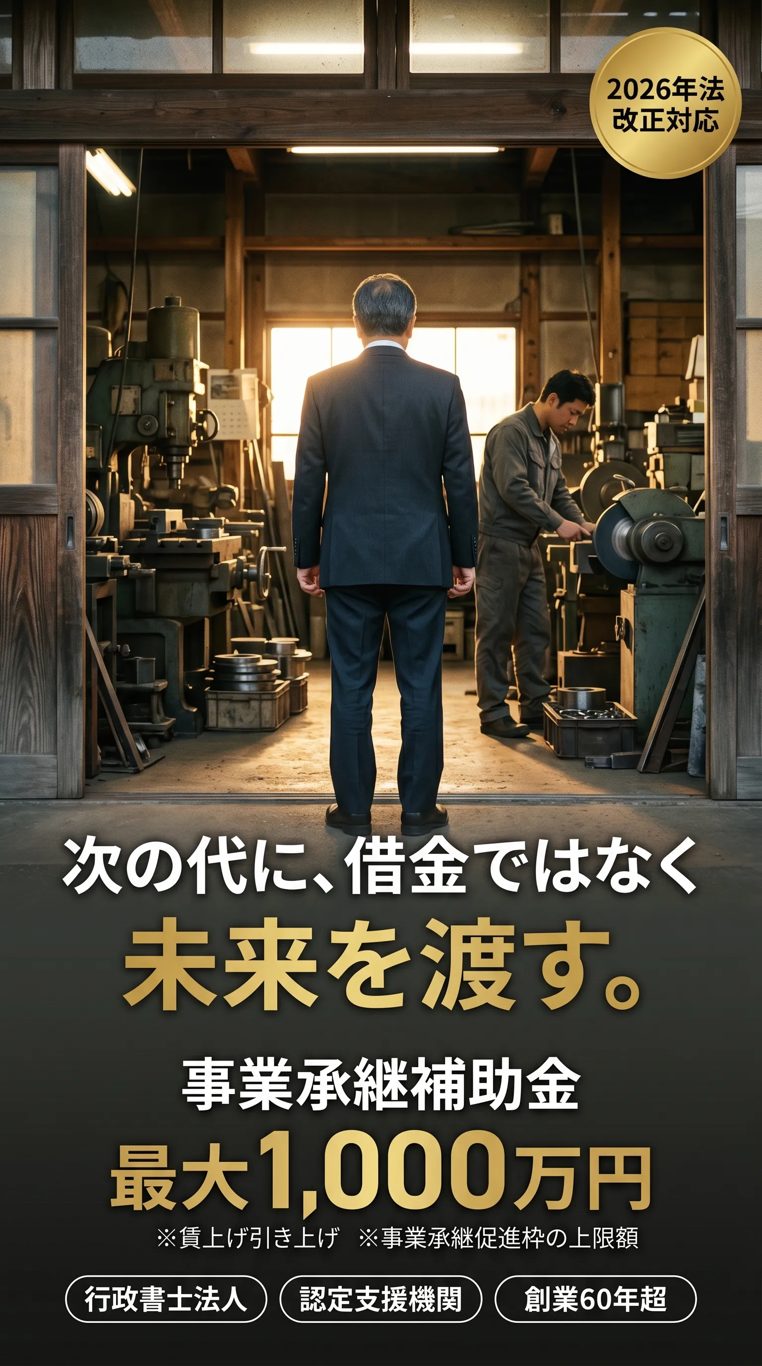 親族内承継・従業員承継・M&Aなど、承継の形によって使える枠が異なります。初回相談(無料)で御社の状況をお聞きし、最適な枠をご提案します。「対象になるか知りたい」だけのご相談でも歓迎です。
